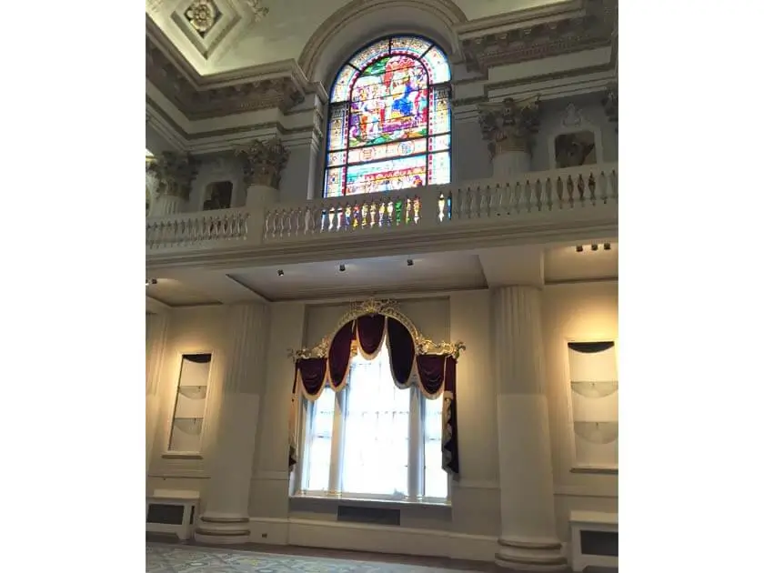 The story goes that when a bomb exploded between Mansion House and The Bank of England during the second world war, the blast knocked out all the color pains of glass from the window, local London people went through all the rubble and all but one piece of glass were found and put back as today.